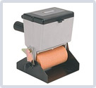 Распределение клея, вытекающего из бачка, производится металлическим валом с продольными насечками. При установке устройства на подставку вытекание клея перекрывается распределительным валом, имеющим ограниченный ход по вертикальной оси. Для отвода наносящего ролика от распределительного предусмотрен двухсторонний рычаг со скобой.